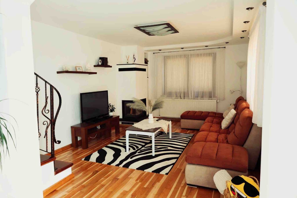 Locația noastră este situată la aproximativ 25 de minute de mers pe jos față de centrul istoric al frumosului oraș Sibiu. Casa dispusă pe trei nivele, se află pe o stradă liniștită, iluminată noaptea. De asemenea puteți servi ceafeaua de dimineața pe terasa din spatele casei unde vă puteți bucura de o atmosferă relaxantă.Tot in spatele casei este gradina cu iarba si un mic iaz cu pesti iar langa este un balansuar din lemn.