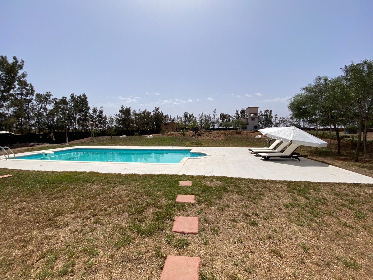 Domaine Grenadine (Gdana): 12ha private estate, no overlooking, open countryside views. Rustic non-premium villa for disconnection, starry nights and fire-pit evenings. Panoramic terrace, outdoor dining, BBQ. Private pool (3.5×2.5m). 2 bedrooms, 2 bathrooms, equipped kitchen, gated parking (3 cars). Meals, Casablanca transfer, extra cleaning, baby cot + high chair (extra fee).