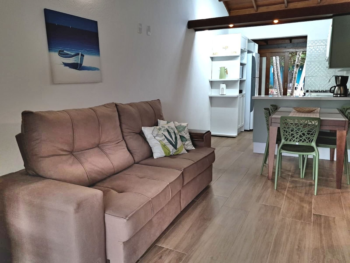 1 bedroom apartment in a condominium facing the sea, 30 meters from the beach. Novo Campeche is one of the most beautiful beaches on the island, very safe and quiet, and is perfect for those seeking quality of life. The apartment is spacious, very complete and equipped with everything you need, air conditioning in the bedroom and living room. Fitness space and a sophisticated boulevard with fireplace. It has everything nearby, supermarket, restaurant, ice cream parlor and bakery, to enjoy the holidays without using the car. Everyone who stays here loves it!