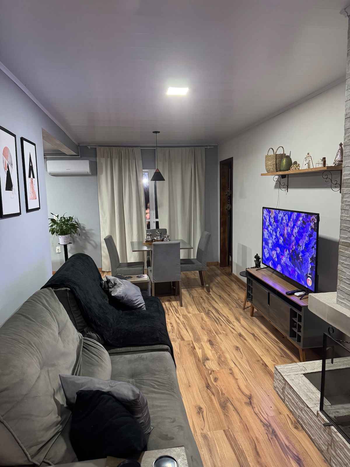 Apto com lareira e varanda grande para relaxar