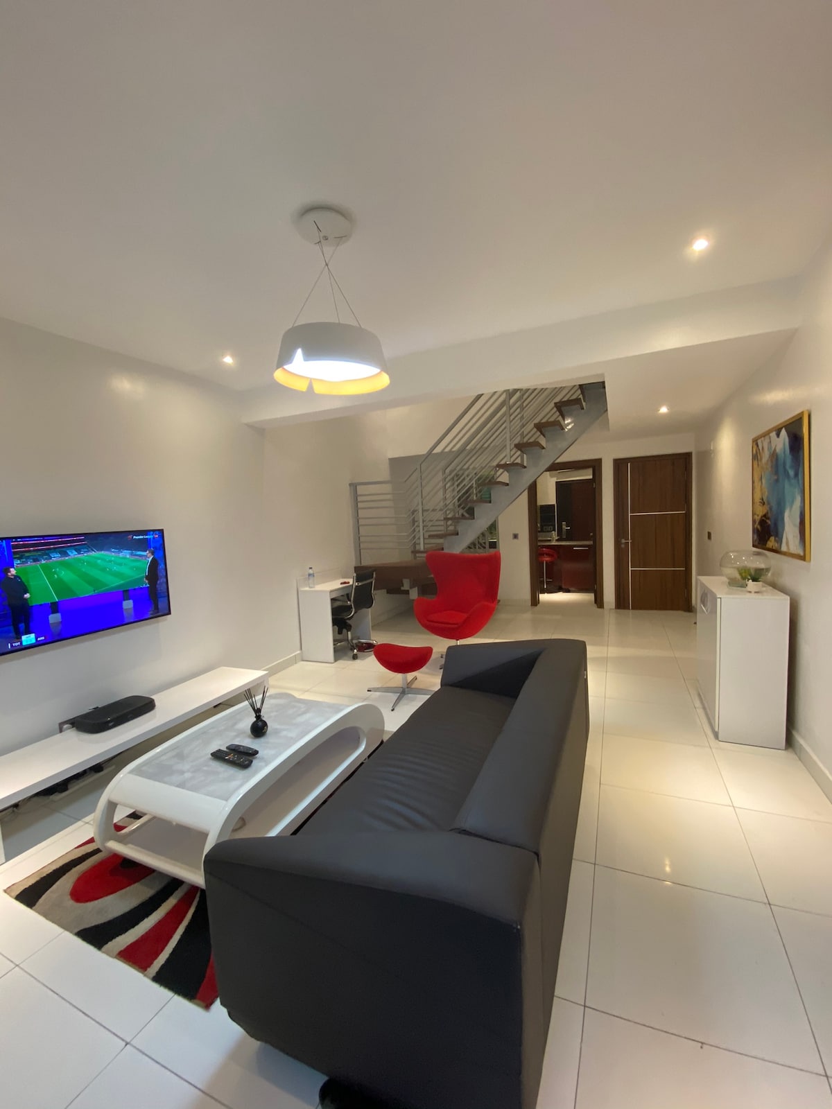 This apartment is home away from home. It was carefully designed by one of the top interior designers in Lagos. A contemporary apartment that is both elegant and sophisticated, yet feels inviting and comfortable. You will enjoy: ● Easy acces to VI, Oniru, Banana island ● Check in process like a hotel ● Smartlock check in ● Onsite security 24hrs, 7days a week ● 24hrs Electricity with no interruption ●Secured/free parking for atleast 4 guest ●2 property manager and 2 cleaners with no charges
