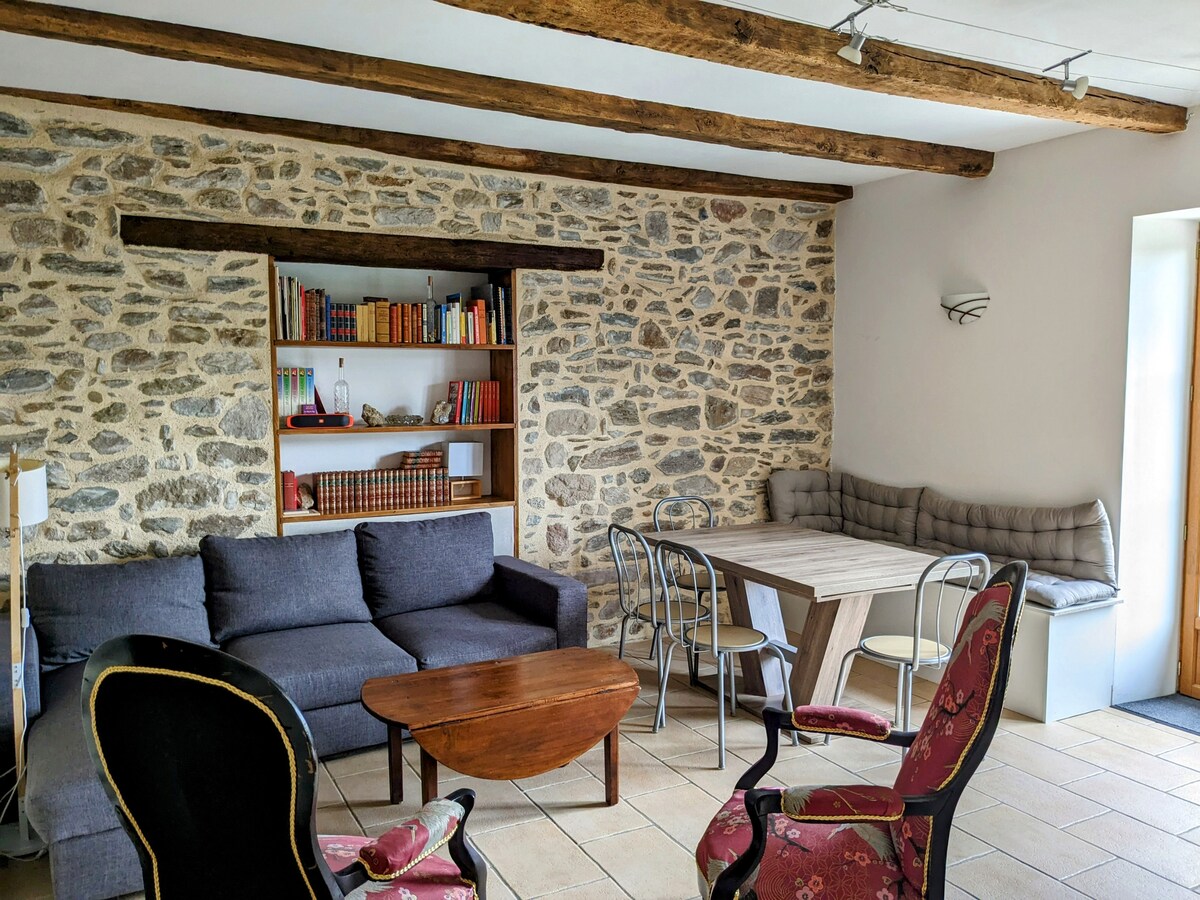 The very warm cottage is decorated in a chic and traditional way. Small wooden terrace with magnificent views of the valley. Fully equipped kitchen, wood stove, 1 bathroom (shower), 1 queen size double bed. Everything is tastefully renovated with eco-friendly materials. Reconnect with nature at this unforgettable escape. Please contact us before booking to be sure of what you want.