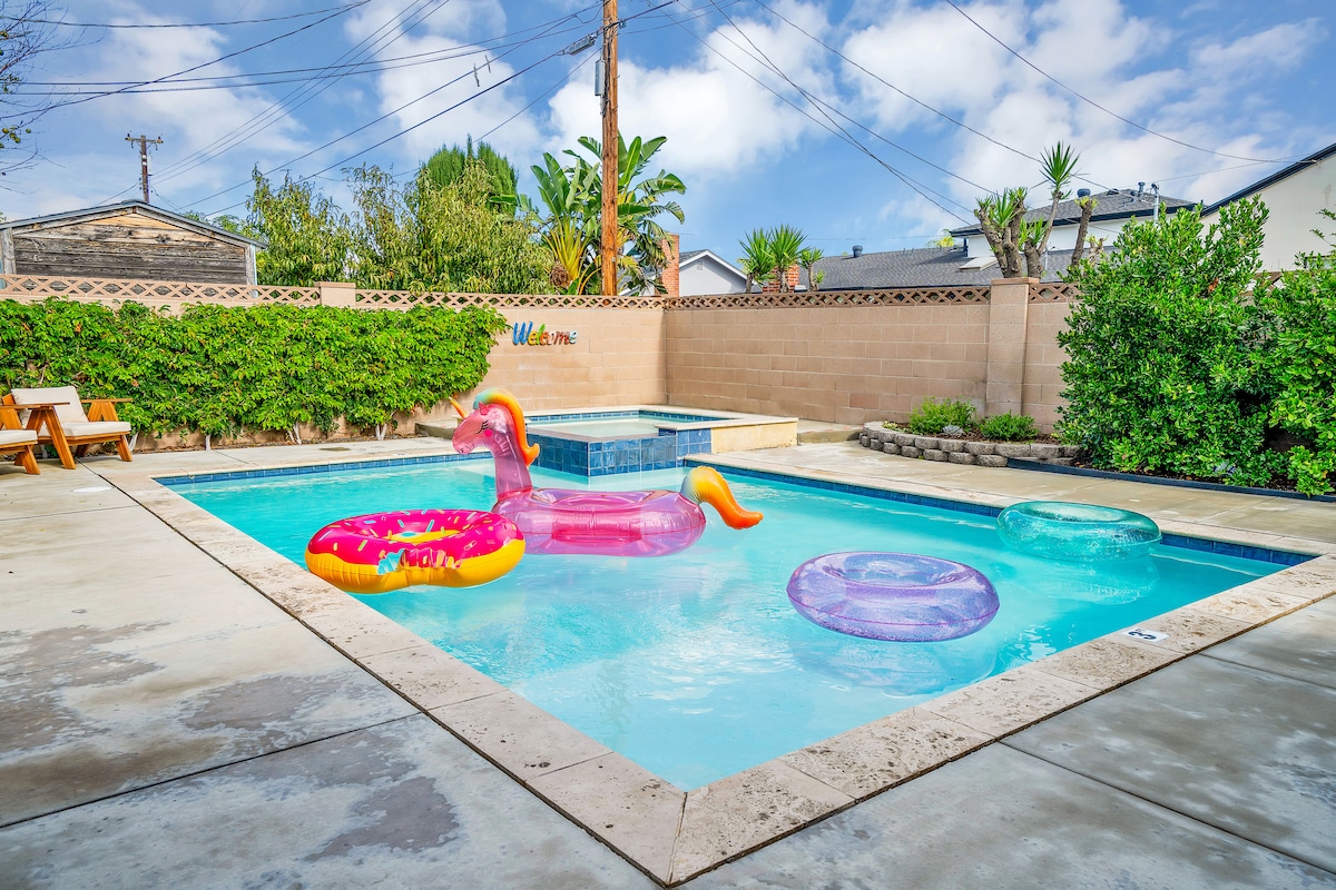Welcome to your perfect home away from home! This spacious 4-bed, 2-bath home is designed for comfort and fun, featuring 6 cozy beds for the entire family. Relax with a private heated, fenced pool and hot tub, enjoy a BBQ/fire pit evening, or play arcade games. The fully stocked kitchen makes meals a breeze, while kids can explore a variety of toys and gear. Plus, you're just minutes away from top tourist attractions. Don't settle for less. Extend your FIFA trip to explore the beautiful SoCal!