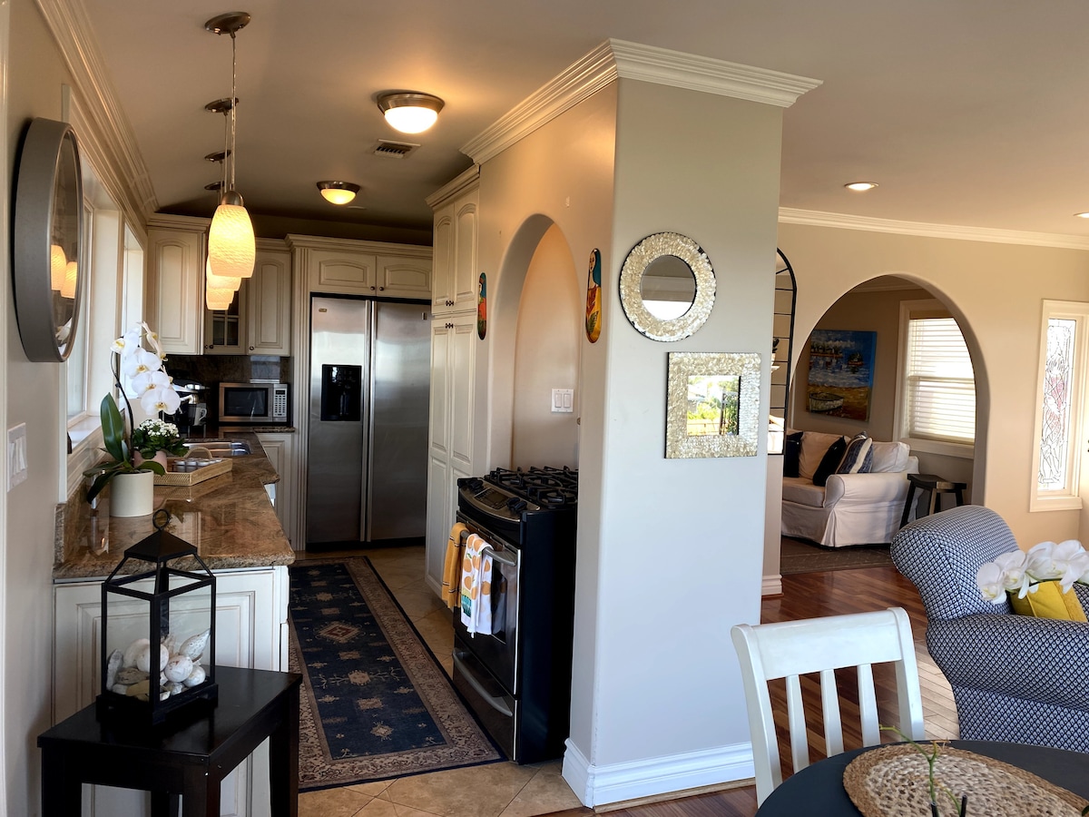 Enjoy your pet friendly 2 bedroom lower level bungalow/casita in beautiful San Clemente while taking in the breathtaking sunsets and ocean/golf course views. Relax here after a day hanging out at the beach, shopping, or visiting one of our many local SoCal attractions. Close to Disneyland, San Diego, wine tasting, fishing and/or whale watching in Dana Point/Newport Beach, check out the museums in Laguna Beach or head to the mountains......all within a short easy drive.