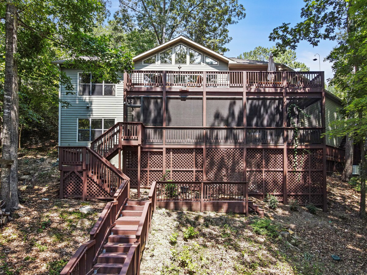 Remodeled home on Lake Allatoona - only land between our home and the lake is property owned by the Army Corp of Engineers. You can walk down to the lake and enjoy the sights and sounds. Speaking of sounds you will faintly hear train horns on occasion throughout the day and night (sound travels across the lake). The house is open and bright, it faces South so plenty of light even in winter. Enjoy sitting on the deck or in the covered patio and enjoy the sights and sounds of nature.
