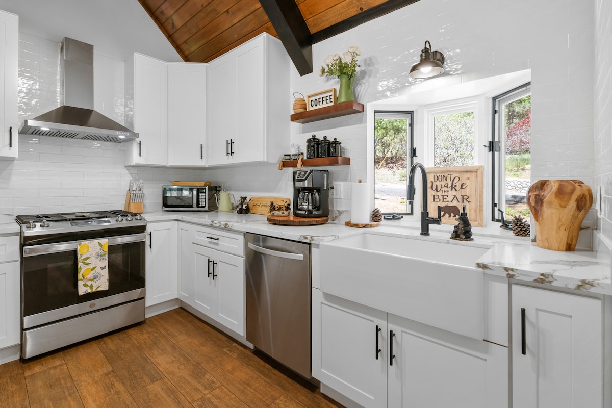 As you walk up stairs passing native boulders and trees, you see an A-frame cabin in the woods begin to peek out, inviting you. Once upon the front deck, the large pane windows draw you into this spacious, high-ceiling, open-concept cabin. Inside, these same windows that drew you in, will encourage the same gazing now, except outwardly. Tastefully designed and relaxing, you may not want to leave, though Big Bear, and Lake Arrowhead all beckon within 30 mins drive... Welcome to The Scandia 🦌