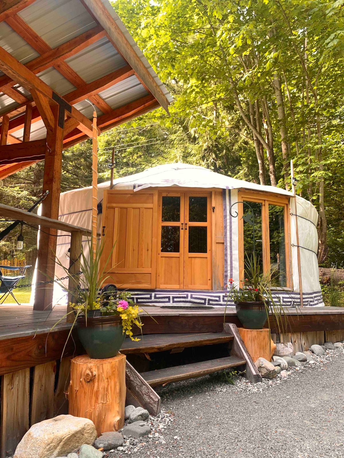 Moon Tree Yurt, a traditional Mongolian yurt with timber framed outdoor living space. Set on a private rural property in the magical Cowichan Valley. Just moments from Skutz Falls and Cowichan Provincial Park. Surrounded by nature with basic amenities, the yurt offers a sustainable, one of a kind "Glamping" experience. Adventure awaits you with Cowichan Valley Trail for epic hiking, biking, and many more outdoor activities. Lake Cowichan, a short drive away for boating, swimming, and tubing fun!