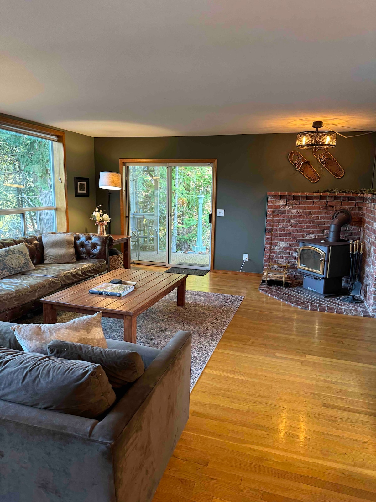 Beautiful cabin style home in the Olympic National Forest With a two minute drive, or a 10 minute walk to beautiful Lake Cushman, closest neighborhood to the Staircase National Park, this home is perfect for relaxed family vacations or a great starting spot for the BEST hikes in the Olympic National Forest. This home features a gorgeous floor to ceiling river rock fireplace. The vaulted ceilings and giant windows give beautiful forest views from this luxurious cabin style home in the woods.
