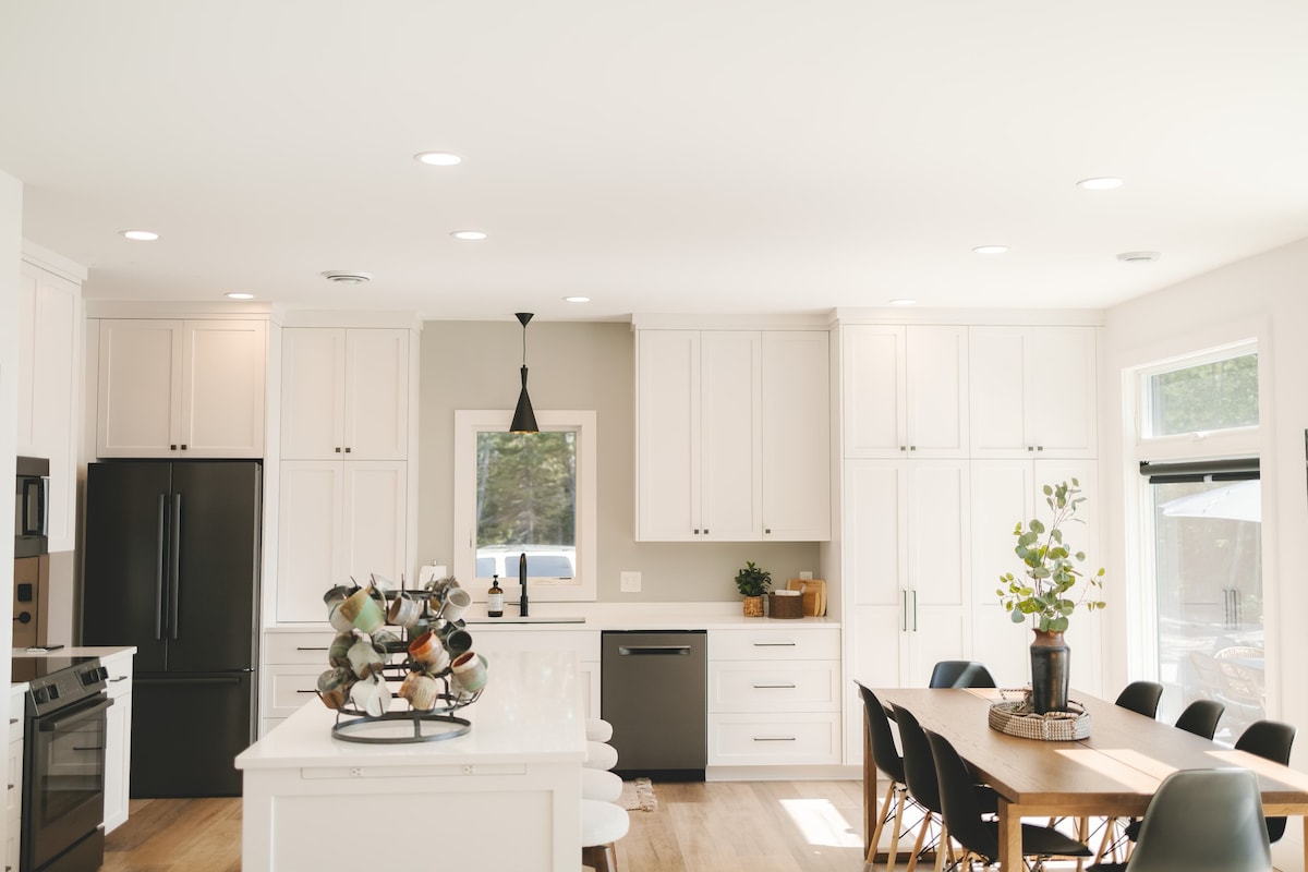 Lake House - All Season Fun! Mt Bohemia is nearby. Snowmobile trail runs through our property. A roomy, rustic-luxe house on Lake Superior! Trails and Slopes for winter fun! Selfies recommended, on the docks at our marina. Tiki hut. Picnic! Paddle! Hang out at all hours! 😎 The house has everything! Stainless appliances. The huge kitchen island makes food prep a dream. All new furnishings. The fridge is well stocked, including frozen goodies and breakfast. Sleep, eat, play and make memories!