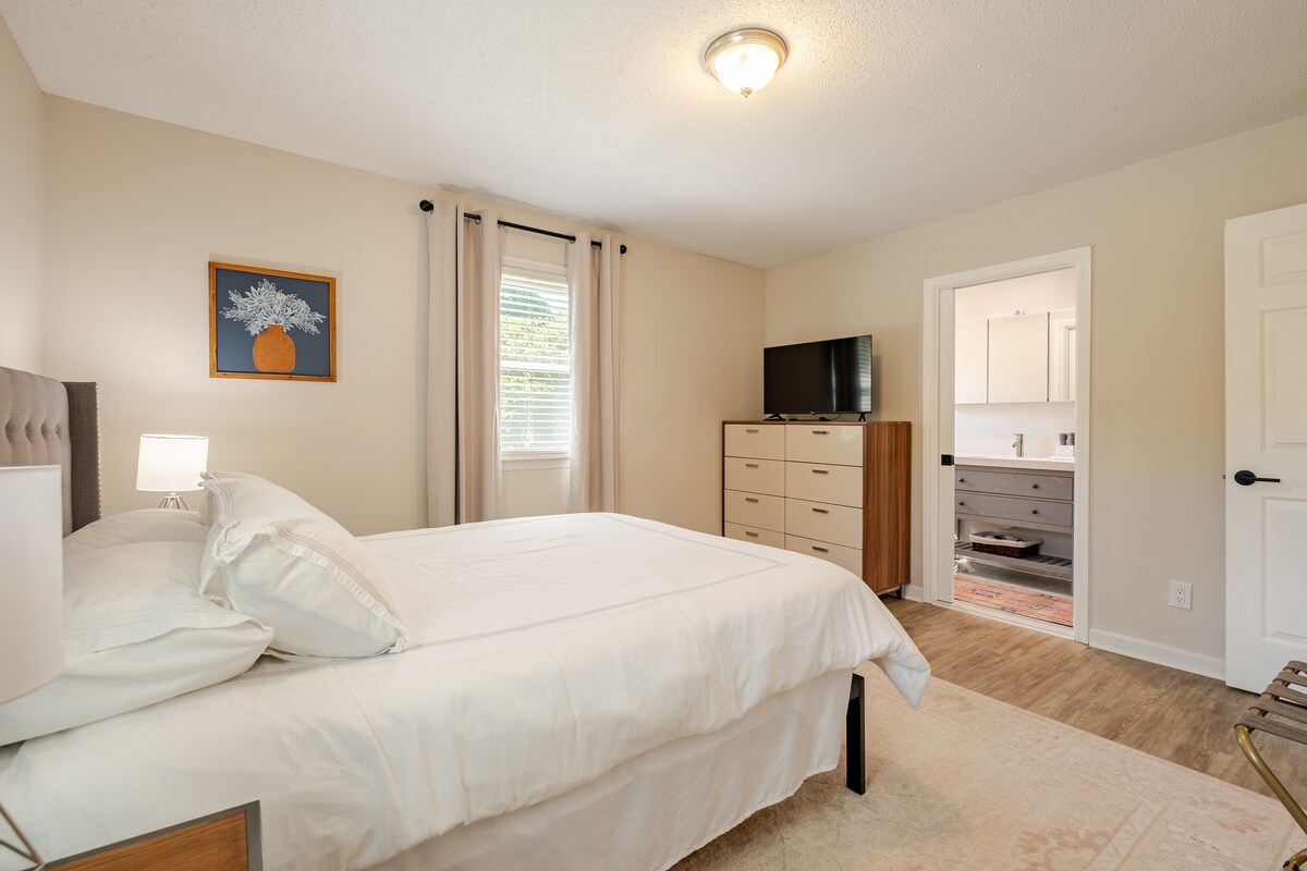 ⭐A Hidden Gem tucked away on a dead end St. in an est. NBD of Historic DT Matthews! The Dwellington has Southern charm w/ a wrap around covered patio, a screened-in porch & a garden view! This spacious guest house has 9ft ceilings, a well thought out floor plan & a relaxing spa like bath. Easy walk to shop, sip, & dine! Come experience all our adorable Town has to offer! Small Town feel with Big City convenience! MULT ways to drive or ride to UPT CLT in less than 25 minutes. Book now and enjoy!