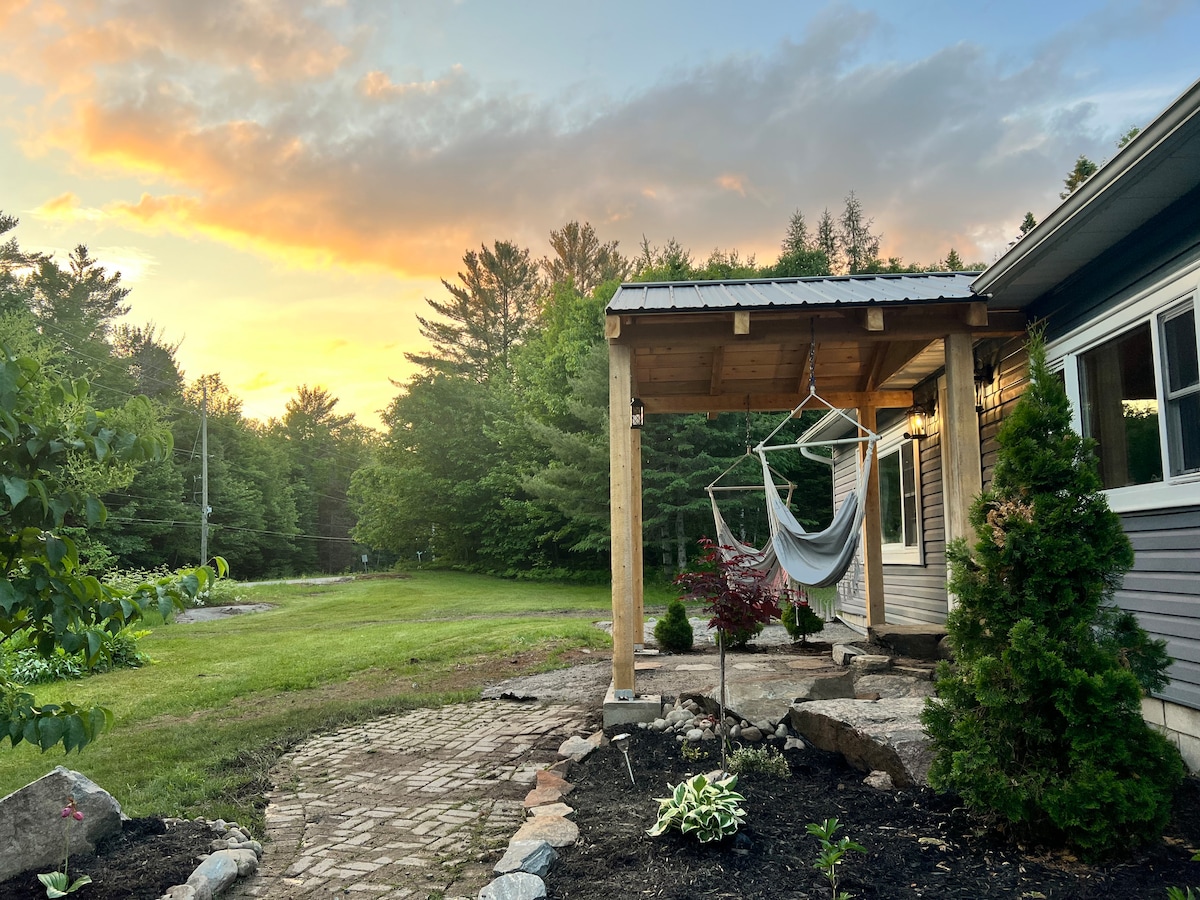 Pack your road trip snacks and take the windy roads to your Muskoka retreat. This newly renovated Four Season cottage sits on 8 acres of forest and is equipped with all the modern luxuries. After a long day of exploring lakes or nearby waterfalls, you'll be able to prepare dinner in a fully stocked High-Tech kitchen. Finish your evening off in our luxury Hot Tub spa by Artesian under the night stars for all-year-round enjoyment . *BYOF (Bring Your Own Firewood) *