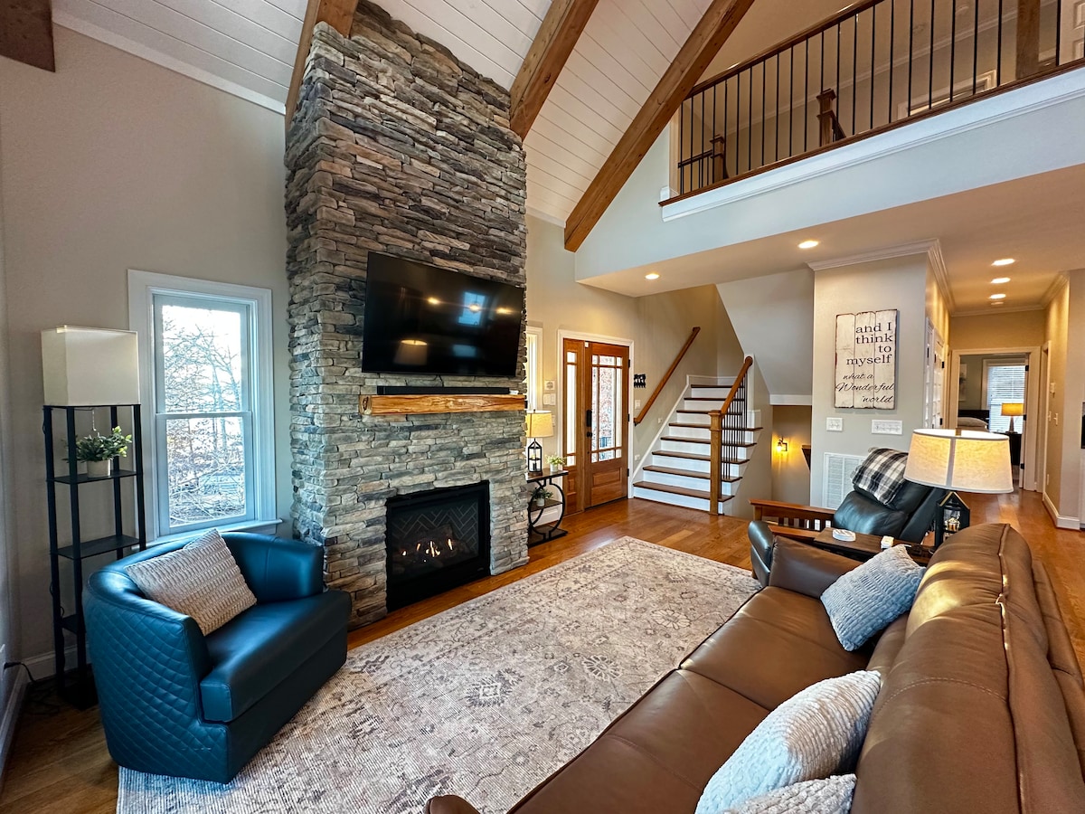 Nestled in the Uwharrie National Forest, “Star Buck Cabin” is a serene getaway that pairs outdoor adventure with cozy rustic comfort. Take in beautiful seasonal views of the farm while staying just 15 minutes from the North Carolina Zoo and Seagrove, famed for its pottery. After exploring, unwind in the hot tub, relax on the patio swing, or gather by the fire pit. Inside, enjoy your favorite TV show, relax by the fireplace, or even cook! Perfect for both adventure and relaxation.