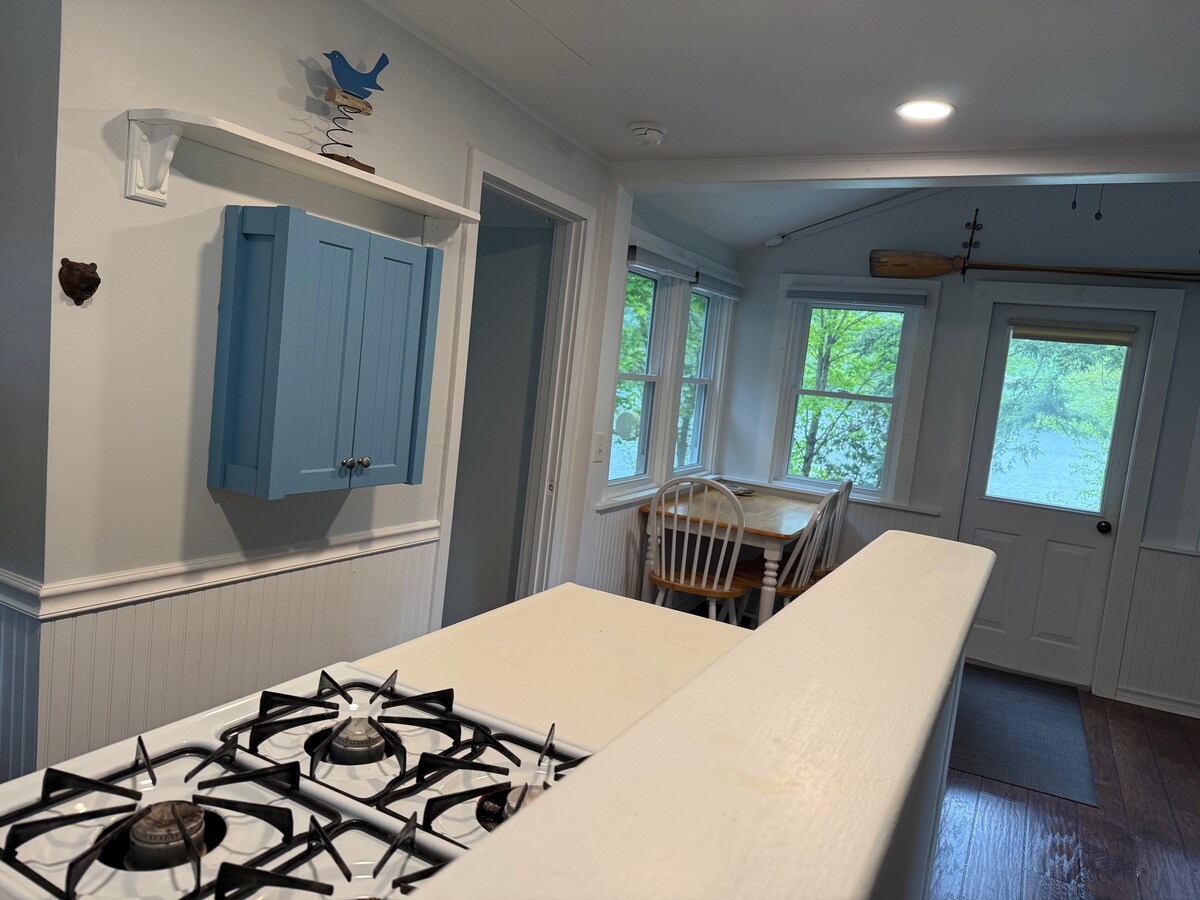 A stunning renovation of a 100-year old Boathouse, this cabin sleeps two and features a full kitchen & bathroom. The Boathouse is situated right at the lake's edge and has a full glass front, deck with a grill to take advantage of unbeatable sunset views. You will also have a private dock and canoe. Perfect getaway for couples who are looking to explore or just unplug and spend a few days relaxing. Wapanacki is dog-friendly! Please see info about our pet fee in the notes below. Sorry-no cats.