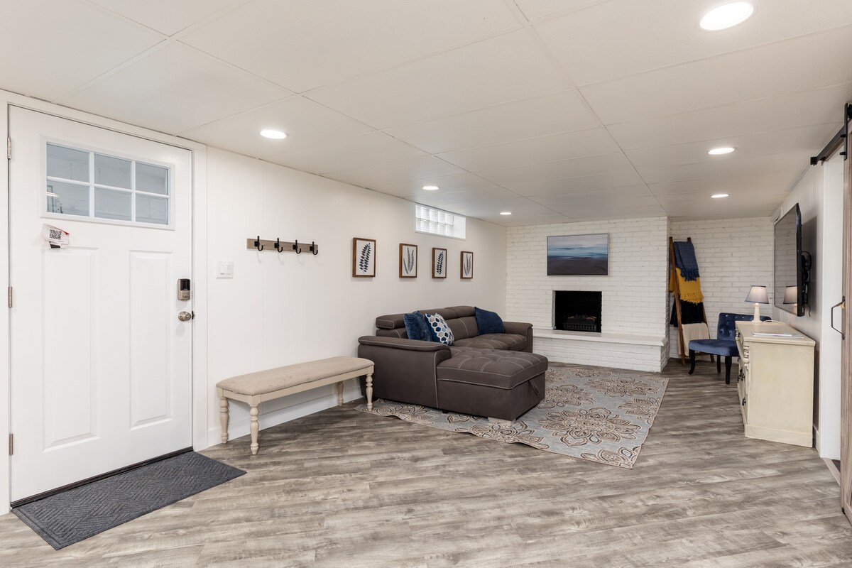 New flooring and carpet throughout!! Escape to our peaceful family retreat. Nestled in a quiet neighborhood with nearby shopping and dining. Unwind in the master bathroom's large jetted tub. Main floor boasts 3 bedrooms with a total of 4 beds, a cozy living room with a Samsung Frame TV, and upstairs, a kids' haven with games, toys, TV, and Nugget Couches. We provide coffee and cocoa pods for a Keurig coffee machine. We do also have a coffee pot if you wish to bring your own coffee.