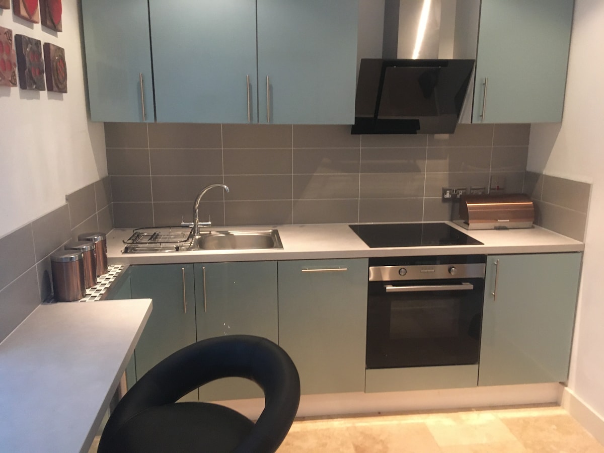 Cosy luxury studio for two on the edge of the village with private sunny courtyard, lawned garden, King size memory foam bed, en-suite with walk in electric shower and full kitchen with; fan oven, 4 ring ceramic hob, extractor, microwave and, washer/dryer. Free Wi-Fi and smart Freesat TV with DVD player. Electric log fireplace. Sofa. Less than 10 minutes walk down the hill to the seafront and village with beach and facilities. Peace, quiet and privacy. Private parking and turning space.