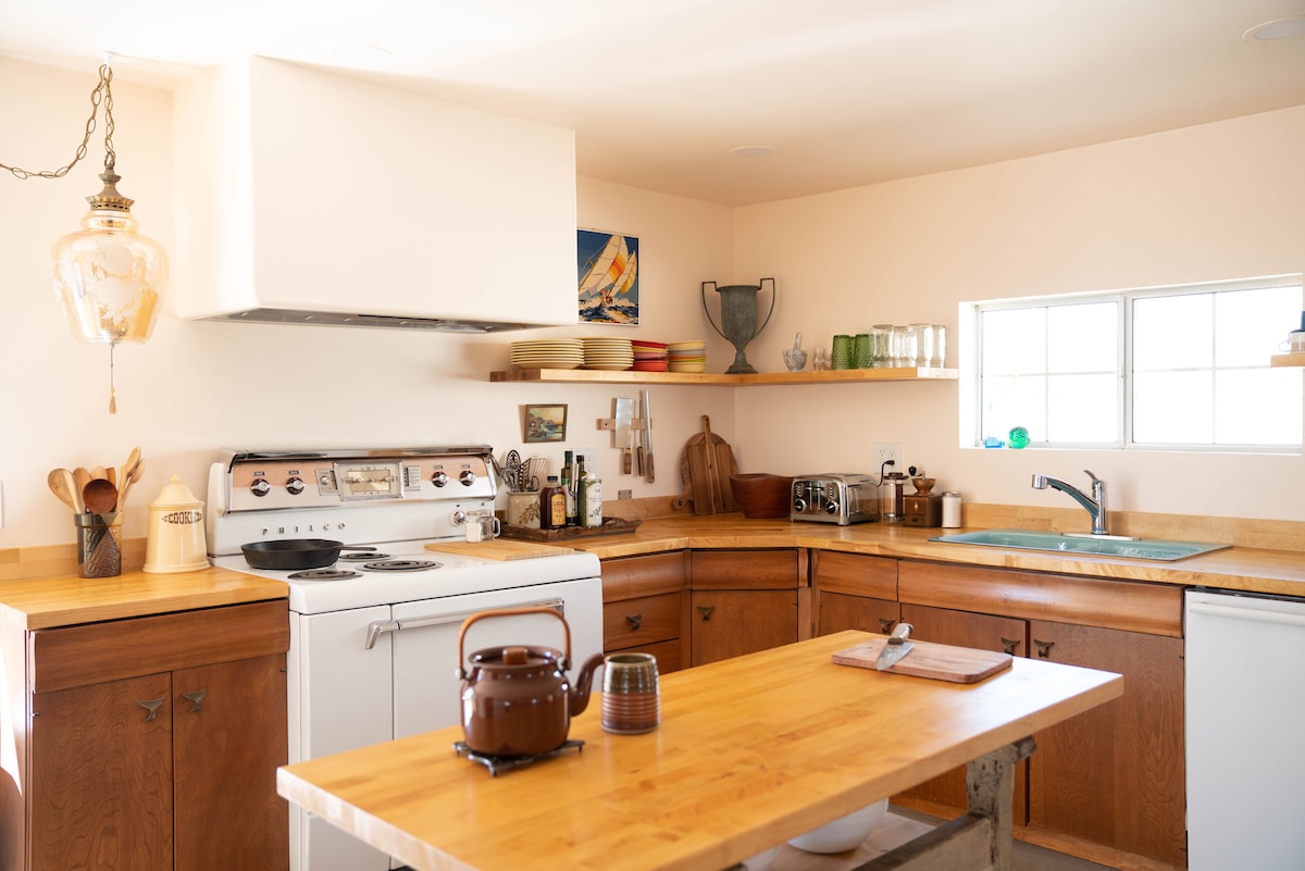 Surrounded by Joshua Trees, sun soaked, and sheltered by stars sits Moonbeam Manor... a peaceful desert retreat for those seeking fun rustic vibes, modern comforts, and the perfect reset. A remote, 2.5 acre, other-worldly wonderland conveniently located to all JT attractions: ~5 min to the Integratron ~10 min to La Copine and Giant Rock MR ~15 min to downtown JT (cafes/saloon/brewery/shops/art galleries) ~25 min to West Entrance of JT National Park ~25 min to Pappy & Harriets / Pioneertown