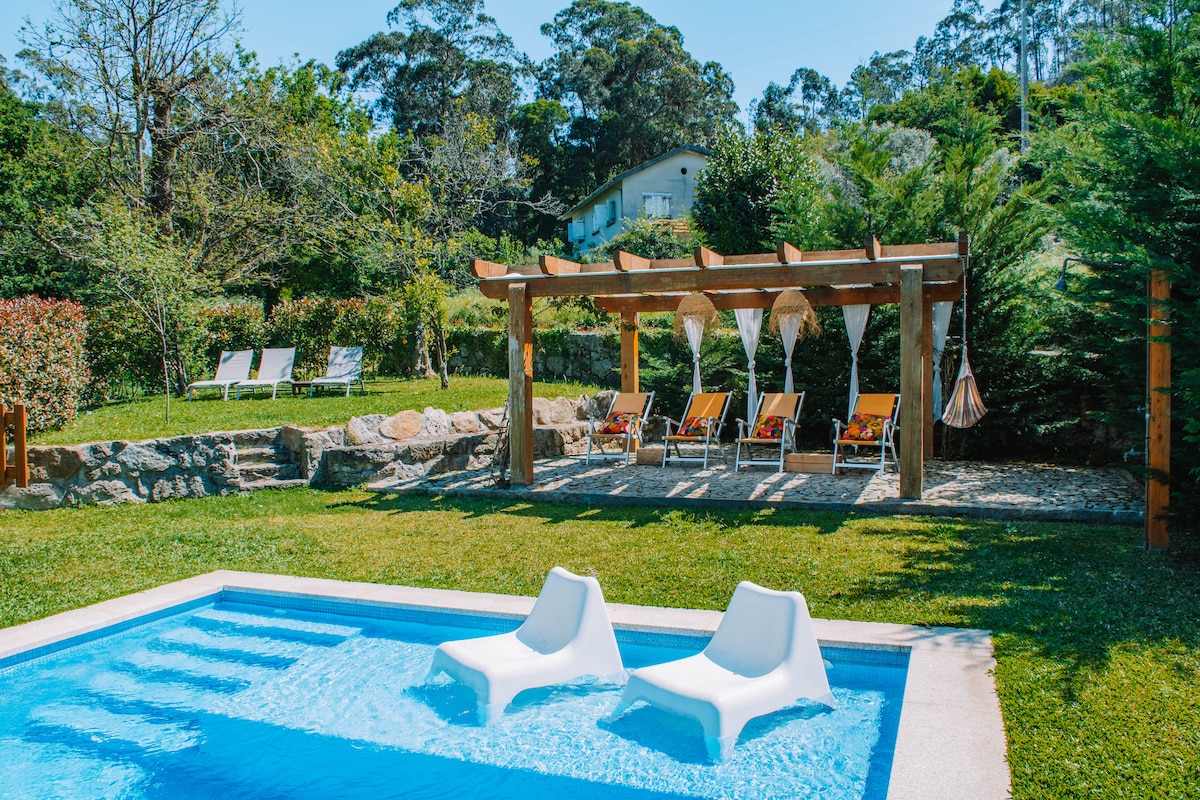 This is a cozy house, located in the middle of Serra D'arga, a place where tranquility reigns, where you can live with animals, where you can visit the lagoons, the waterfalls, where you can discover incredible places, where the mountains mix with the sea, where you can breathe a different air, where you can hear nature speaking. Located 30 minutes from Viana do Castelo, Ponte de Lima or Caminha. It's the perfect place for a vacation with friends or family.