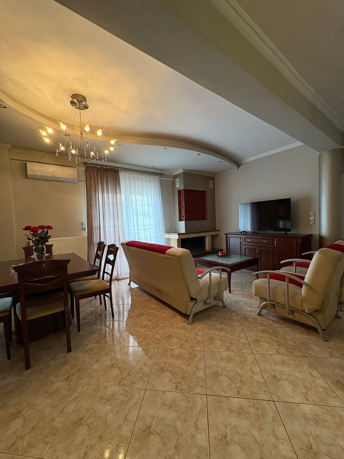 Πολυτελές , άνετο διαμέρισμα με μοντέρνα διακόσμηση. Περιλαμβάνει πλήρως εξοπλισμένη κουζίνα για παρασκευή γευμάτων , τζάκι , άνετη βεράντα και παρκινγκ. Το διαμέρισμα βρίσκεται δίπλα από δύο μεγάλες καταπράσινες πλατείες όπου διαθέτουν πάρα πολλές επιλογές σε καταστήματα εστίασης (καφετέριες , εστιατόρια ) , σούπερ μάρκτετ κ.α.