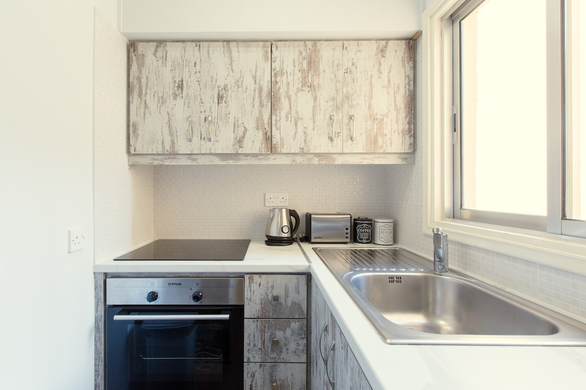 Modern studio with balcony in the heart of Makenzy area Larnaca. Save money and time walking to the most famous landmarks. The unique seafront studio is recently renovated as you can see in the photos. Offers fully equipped kitchen and fully airconditioned in the best area of Larnaca. This modern, sun-drenched apartment offers a tranquil residential vibe alongside quick, easy access to the downtown areas. Wonderful coffee shops and restaurants all close by. Kitchen items provided by host.