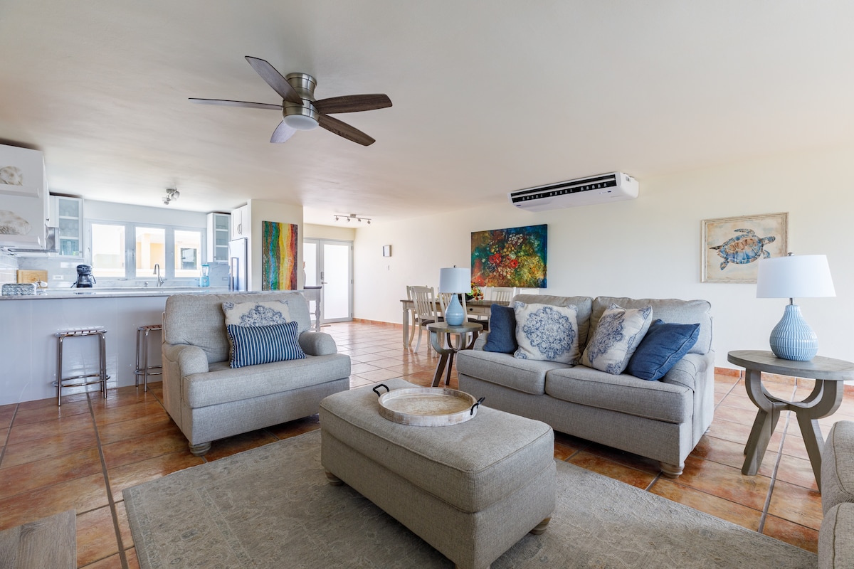 Beach view Villa within walking distance to Seven Seas Beach. Perfect home for families/couples that enjoy nature. The villa is a big living area and balcony to enjoy among family and friends. The complex has 2 pools adults and children. 2 beach access to 7Seas, Playa Escondida and a world-renowned Nature Reserve Las Cabezas de San Juan with its Bioluminescent Bay. Dining offerings range from local Kioskos, Seafood Restaurants casual/upscale. The property is located just 40 mins from San Juan.