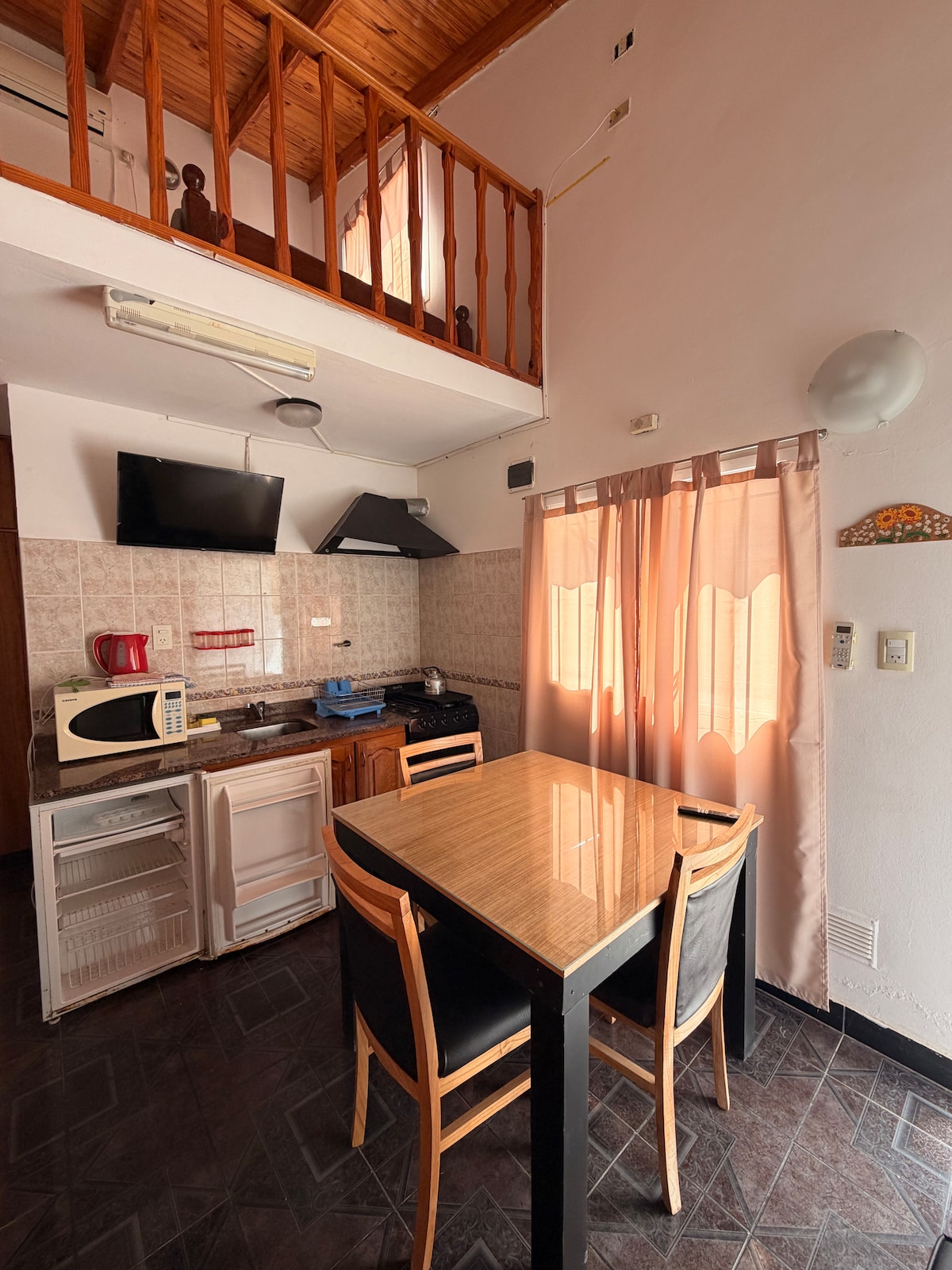 Abigail appartments Departamento centro monoambiente ideal for 2 people and a minor(chico). It is meters from the pedestrian and the beach. The apartment has stairs that lead to the air-conditioned room, and downstairs it has a small sofa bed and a fully-equipped kitchen. It has an exit to the terrace, overlooking the beach and downtown pedestrian. On the other hand, it has a shared grill. Parking is not available!