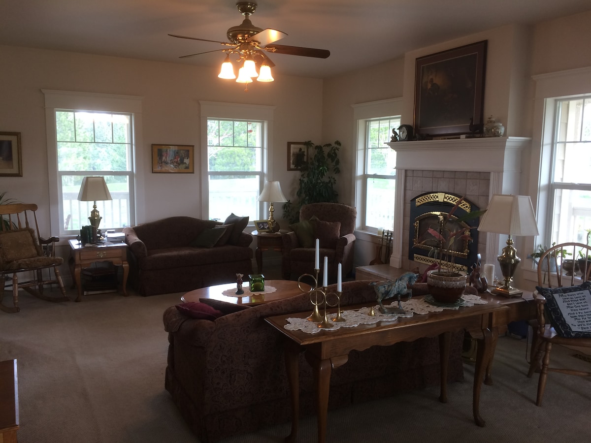 Come Stay at Meadowlark Heritage Farm! • Handicap Accessible • 10 min to University of Idaho • 25 min to Washington State University • Private Wing in Our Farmhouse • Wi-Fi • Small Self-Serve Breakfast • Keurig, Microwave, Toaster, Electric Kettle, & Mini-Fridge • Master Suite: King Size Bed & Electric Fireplace • Second Room: 2 Twin Beds & Small Dining Table • Private Covered Porch • Large Bathroom; Roll in Shower • Spacious Closets • Great Sunset Views • Quiet Farm with Goats, Alpacas, Cows