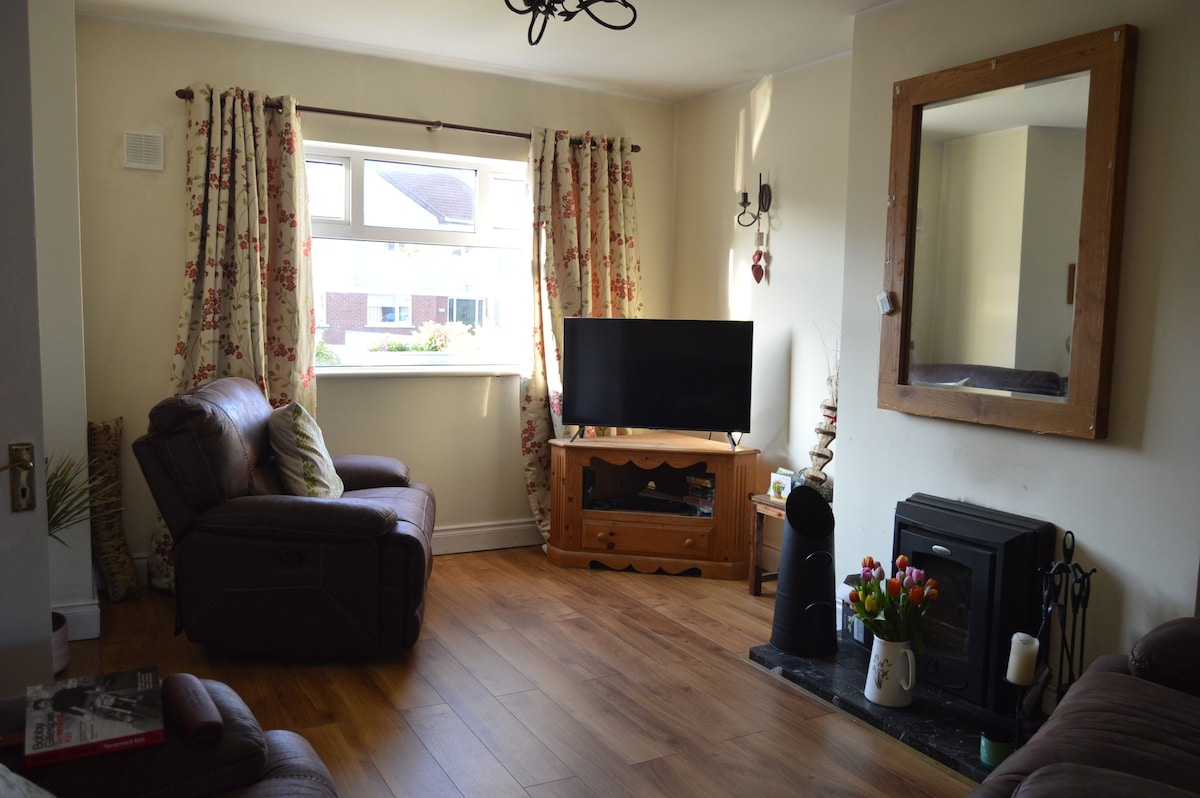 Spacious, self contained, duplex 3 bedroomed apartment with balcony in quiet residential area, overlooking Ridgepool on the famous river Moy. Sleeps up to 6 adults, allowing for young children, can accommodate maximum 8. Booking more than 4 adults? Contact owner first. You’ll be mesmerised by the tranquil sound of the gushing river as it passes through the salmon weir. Private off road parking. Five minutes walking distance to centre of town with its shops, restaurants and pubs.