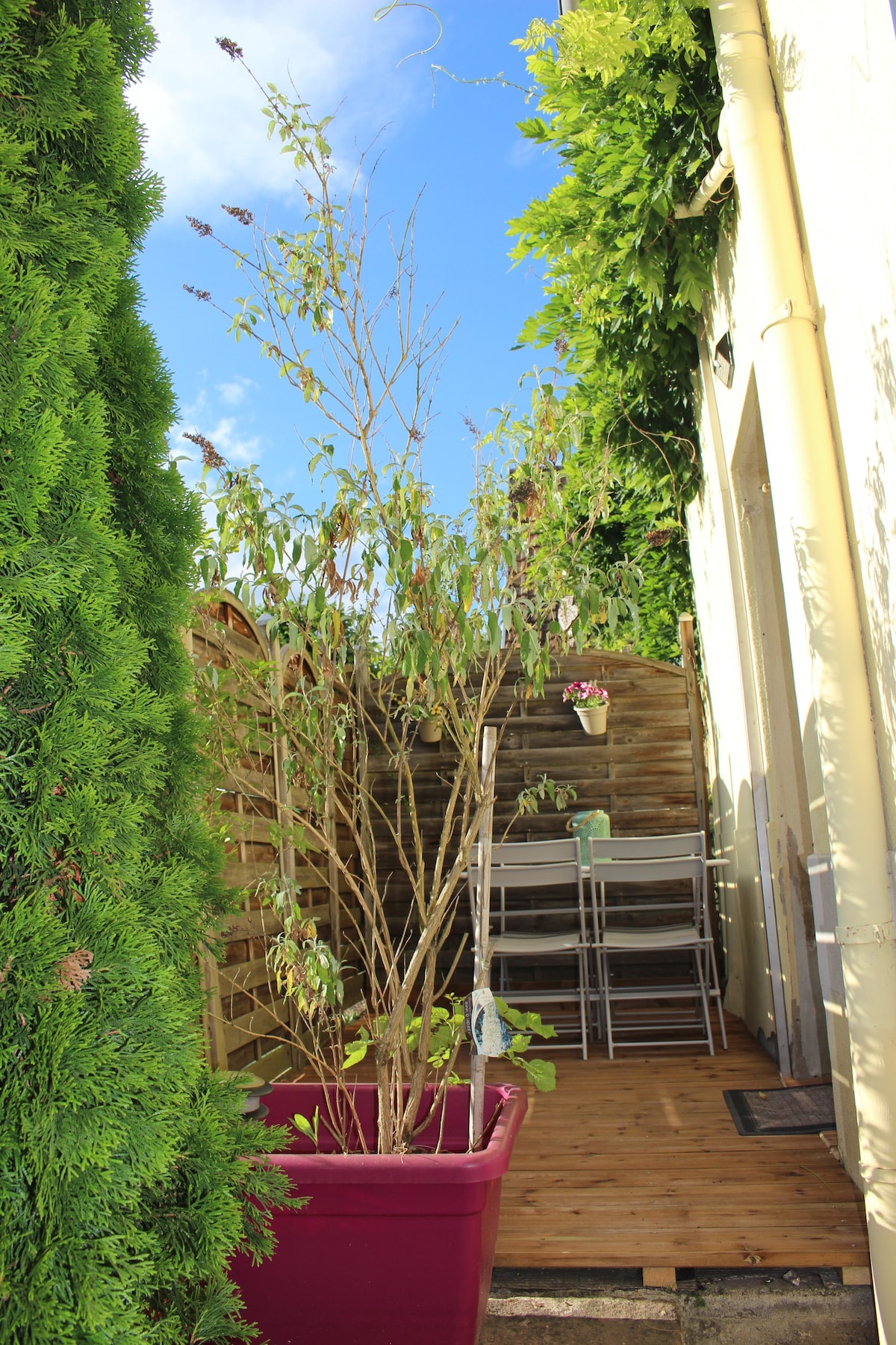Our cottage has been completely refurbished and can accommodate up to 4 people. On the ground floor you will find a beautiful living space with private access to the terrace and garden. The living room consists of a sofa, TV with DVD player. The kitchen is equipped and opens onto the dining area. You will have access to the bathroom (walk-in shower, cabinet with sink). Upstairs there are two bedrooms and an office area. A closed room is accessible in the basement.