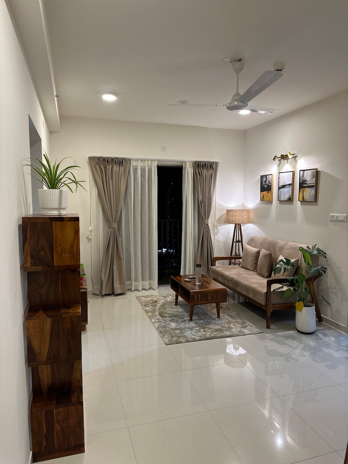 Wake up to stunning sunrise views at The Cozy Cove, a serene retreat in Pune’s Blue Ridge Township. This modern, fully-furnished apartment features a cozy sofa cum bed, a restful bedroom with soft linens, and elegant interiors designed for comfort and style. Enjoy Netflix and chill nights on the smart TV, a serene balcony setup, and a sleek modular kitchen equipped for all your needs. Perfect for couples or small families, it’s a peaceful escape with all the conveniences of home.