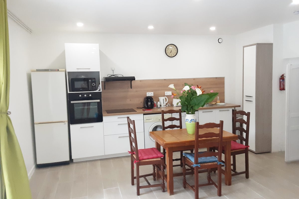 Fresh apartment in summer for family, friends, lovers, single-story, garden, land, all completely independent, it is equipped and decorated for your comfort walking distance to shops and restaurants - Pets allowed - reduced mobility (small) - Living room sofa bed for 2 people - Bedroom with bed for 2 people - Free washing machine and dishwasher - Bathroom - Fan - Internet TV - New ping pong table - Swing trampoline - Parc du Bournat on foot Sarlat