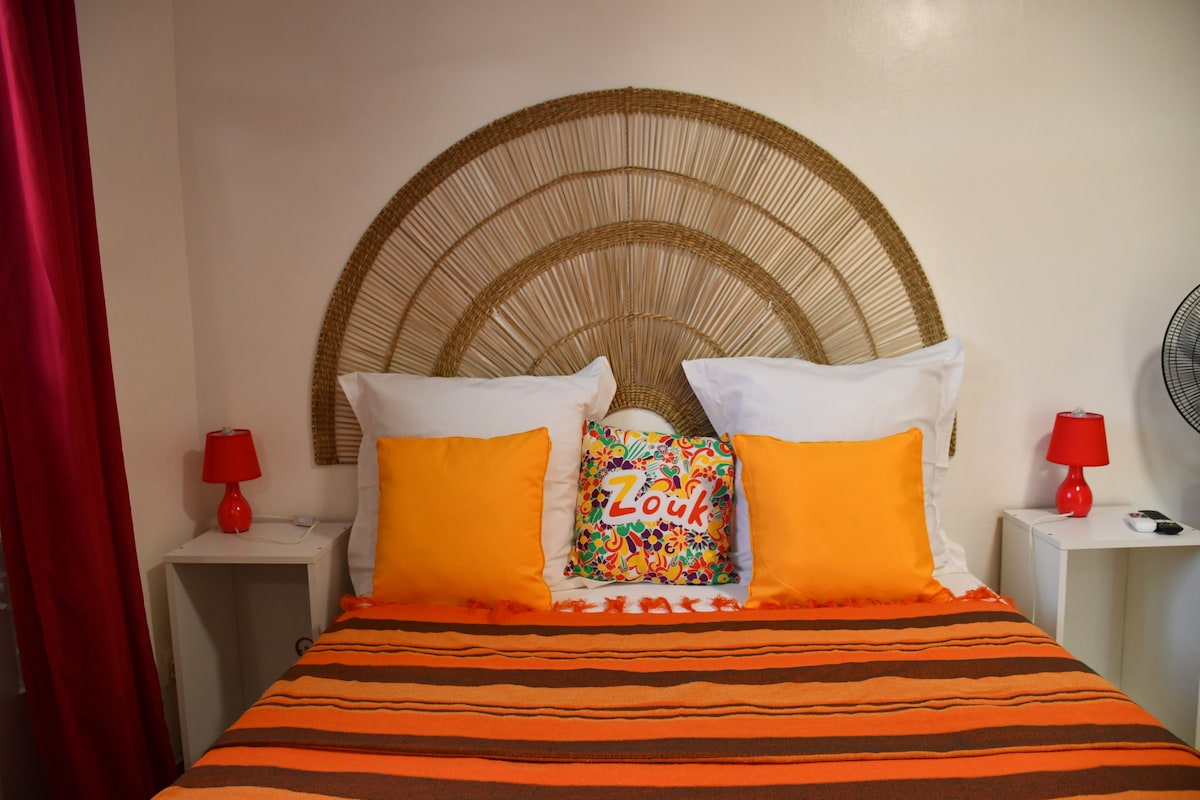 Experience exceptional moments in a fabulous one-bedroom apartment (64m²) located in a luxurious, secure residence just 5 minutes from the capital, Fort-de-France, where you'll be lulled by the waves and amazed by the magnificent sunsets. Access to nearby beaches, restaurants, a supermarket, a casino, and a diving center are all within 3 minutes. High-quality amenities: queen-size bed, air conditioning, a fully equipped kitchen, masks/snorkels available, and secure parking.
