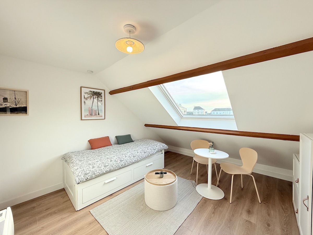 Relax in the heart of the bustling village of Batz sur mer. The accommodation includes three beds with duvets and pillows (bed linen and duvet cover and bath towels are not provided). (Option: possibility of providing bed linen and towels… price 20 euro per occupied bed, to be defined with the owner before your arrival), The accommodation is clean on your arrival, you must clean before your departure. Thank you 😊