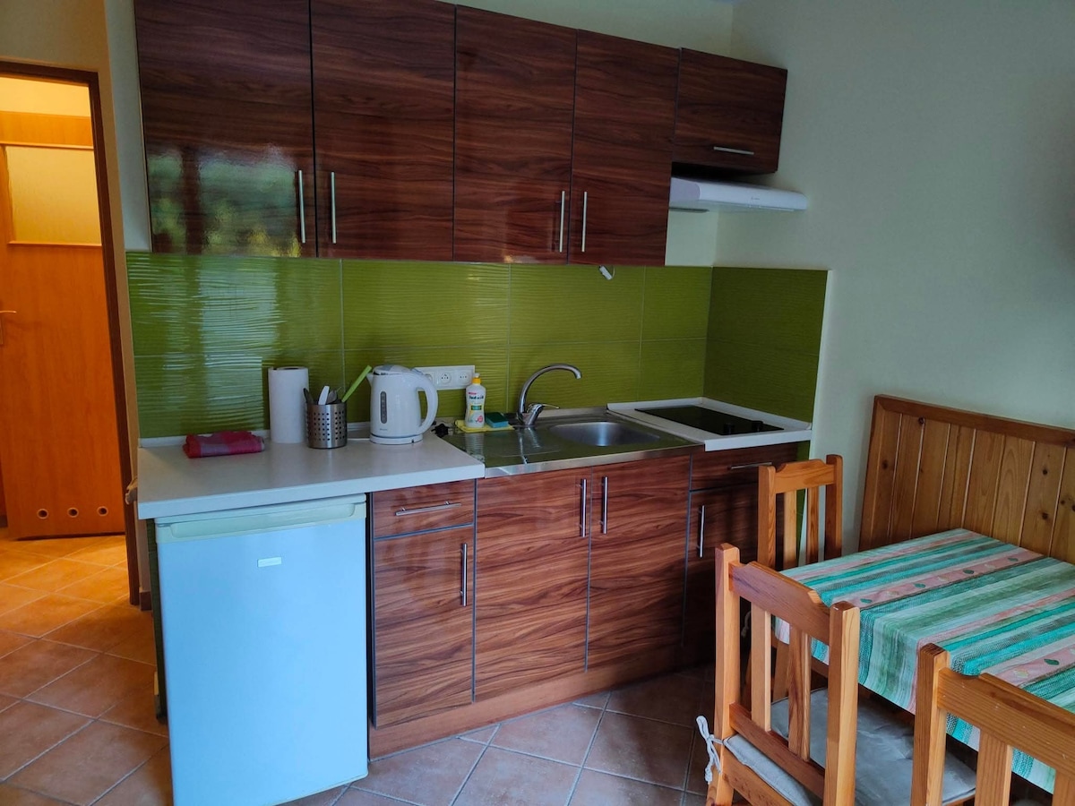 Quiet and peaceful neighborhood. Fenced area, parking on the property, close to the bicycle path. Bicycle rental, barbecue and children's playground. The studio is new, commissioned in May 2021. We cordially invite you