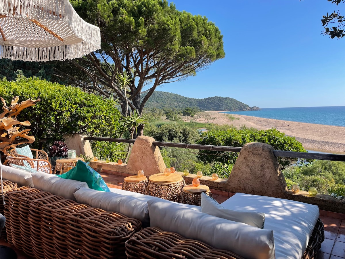 In our seafront residence, Maranatha Porto Vecchio, we provide several separate villas which share our pools and garden. Our beach is only for our customers. This large studio facing the sea, has a large terrace where you can have breakfast and dinners. Equipped kitchen, separate bathroom, large bedroom with a 160 wide bed and one single (90). A shared jacuzzi for 2 persons is at your disposal on our beach. Sundown from the jacuzzi!!