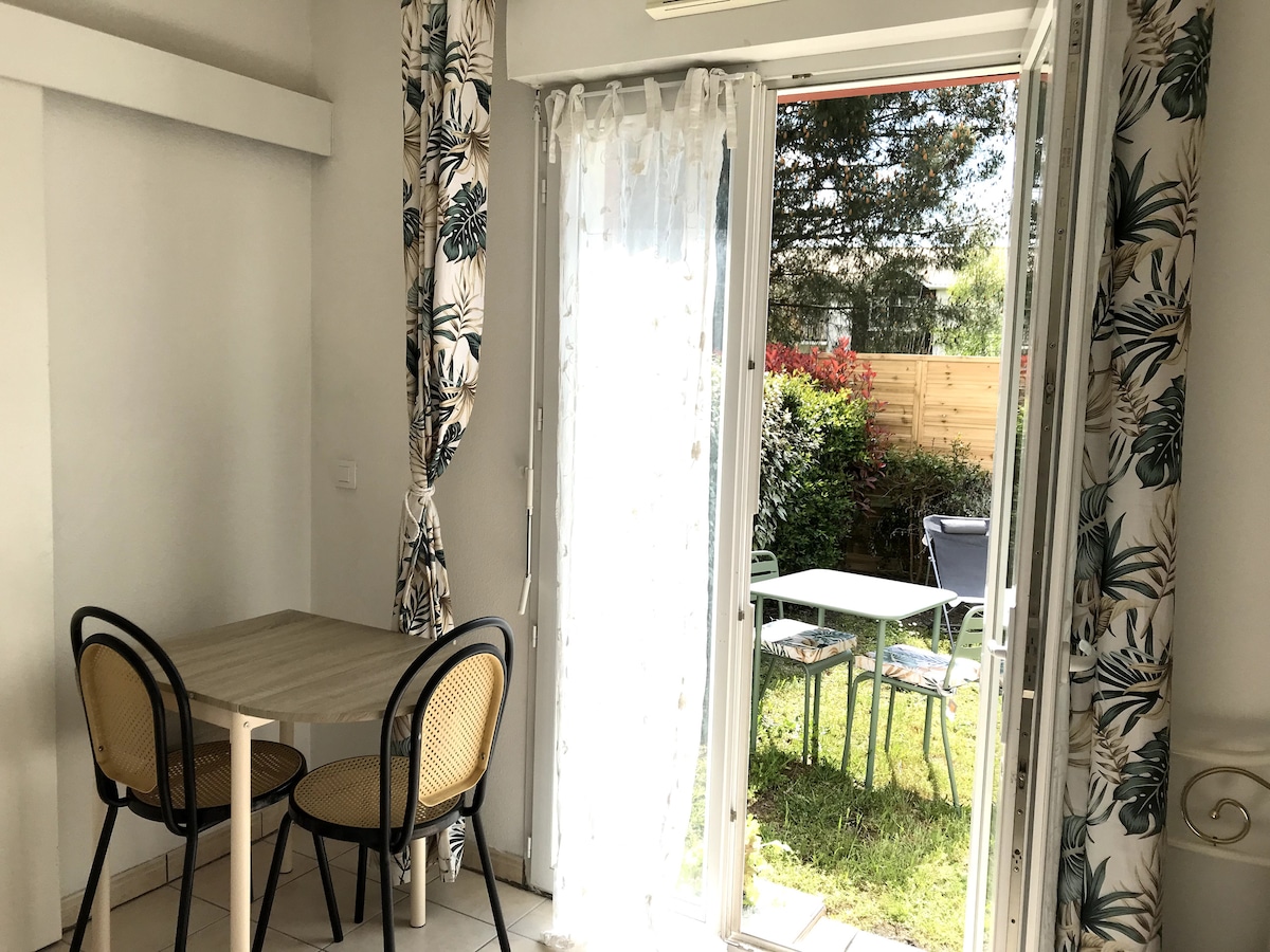 Studio and separate entrance! In a small quiet corner on the edge of the woods and only 800 m from the beach. From the terrace, you will hear the squirrels jumping from branch to branch. You can take the bike path 50 m to reach the nearest shops 200 m away (bakery, fishmonger, greengrocer, wine cellar, etc.). In the evening, taking advantage of the last rays of sun, you will be transported by the sweet scents of strawberry trees and mimosas mixed with the spray of the basin.