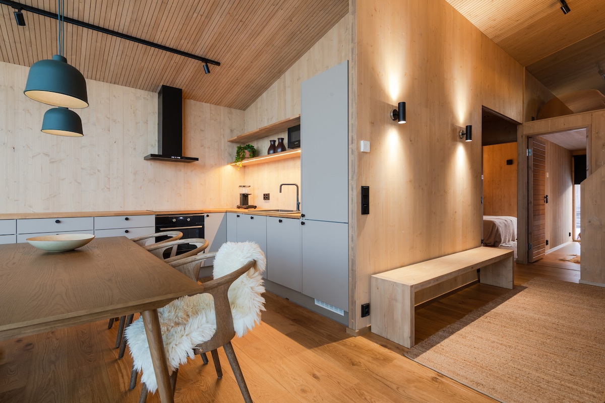 Welcome to a new cottage where the magic of the north comes to life! The windows offer a magnificent view of the lake, and in clear weather the sky is adorned with dancing northern lights. Inside, warmth and atmosphere are provided by a fireplace that invites you to relax in the midst of nature's silence. The perfect place to relax, enjoy and experience the magical moments of Lapland in comfort and peace.