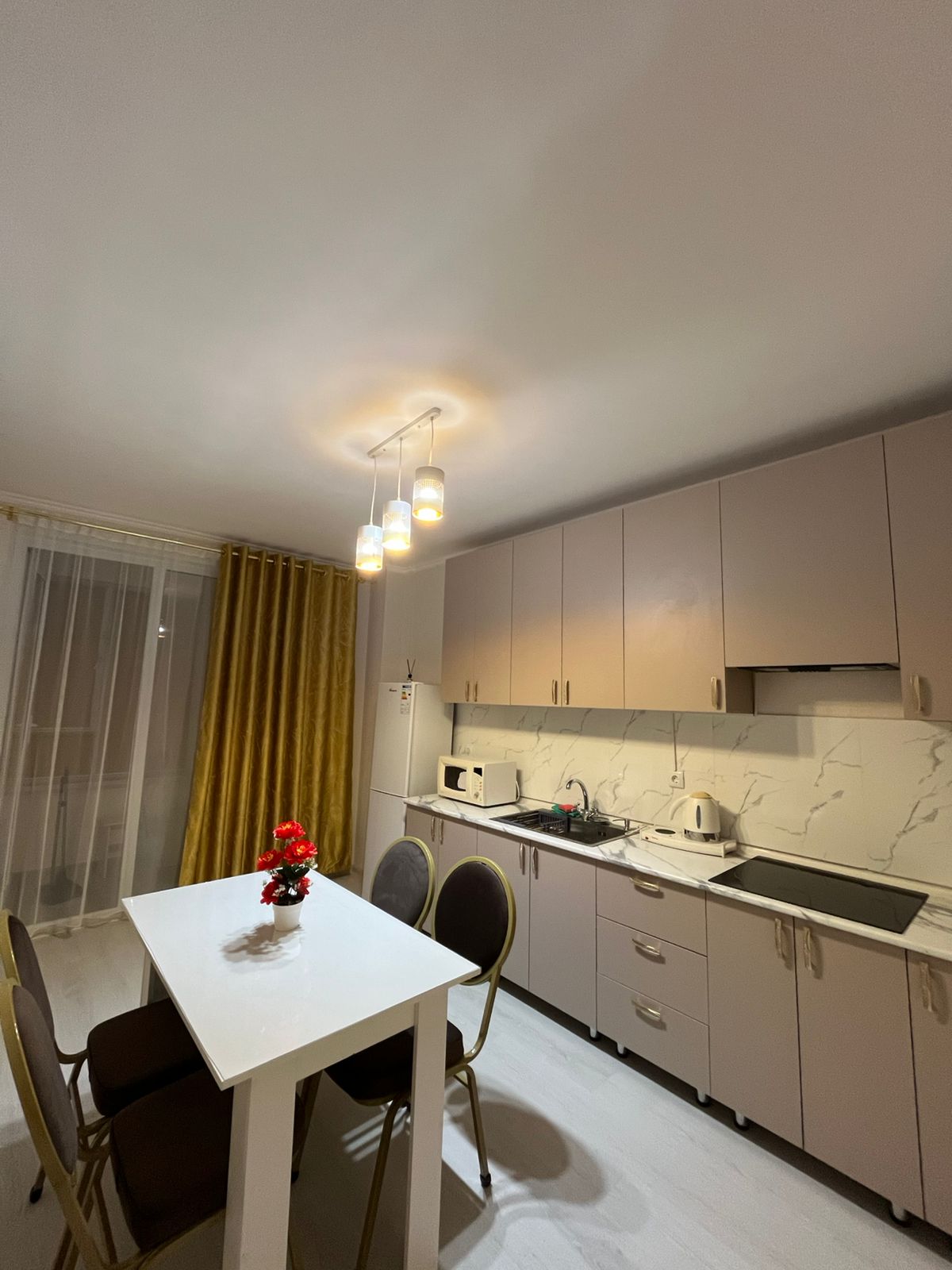 Welcome to the luxury apartment located in Al-Farabi residential complex near the square. The apartment is newly renovated, has everything you need for a long and comfortable stay: all household appliances, high-speed Wi-Fi internet, cable TV, 2 beds, there is also a double folding sofa for guests, all the necessary furniture, utensils for cooking and eating.