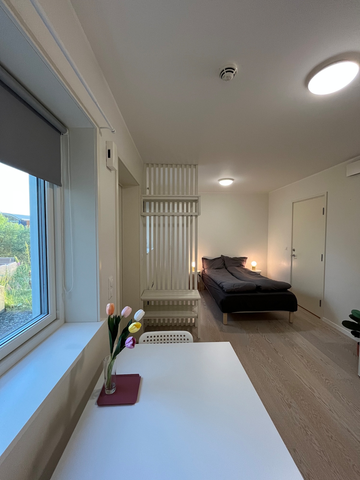 Small studio apartment in an old villa. Separate entrance. 18m2. Bathroom with shower and washing maschine. Kitchen with basic appliances. 10 min walk to city centre, 5 minutes to skiing/hiking tracks and recreational area perfect for wathcing the aurora borealis. 5 minutes walk to supermarket, 3 minutes to bus stop with connections to city centre, university, airport etc. House is currently under some renovations, however this will not affect the studio. Parking by special arrangement only.