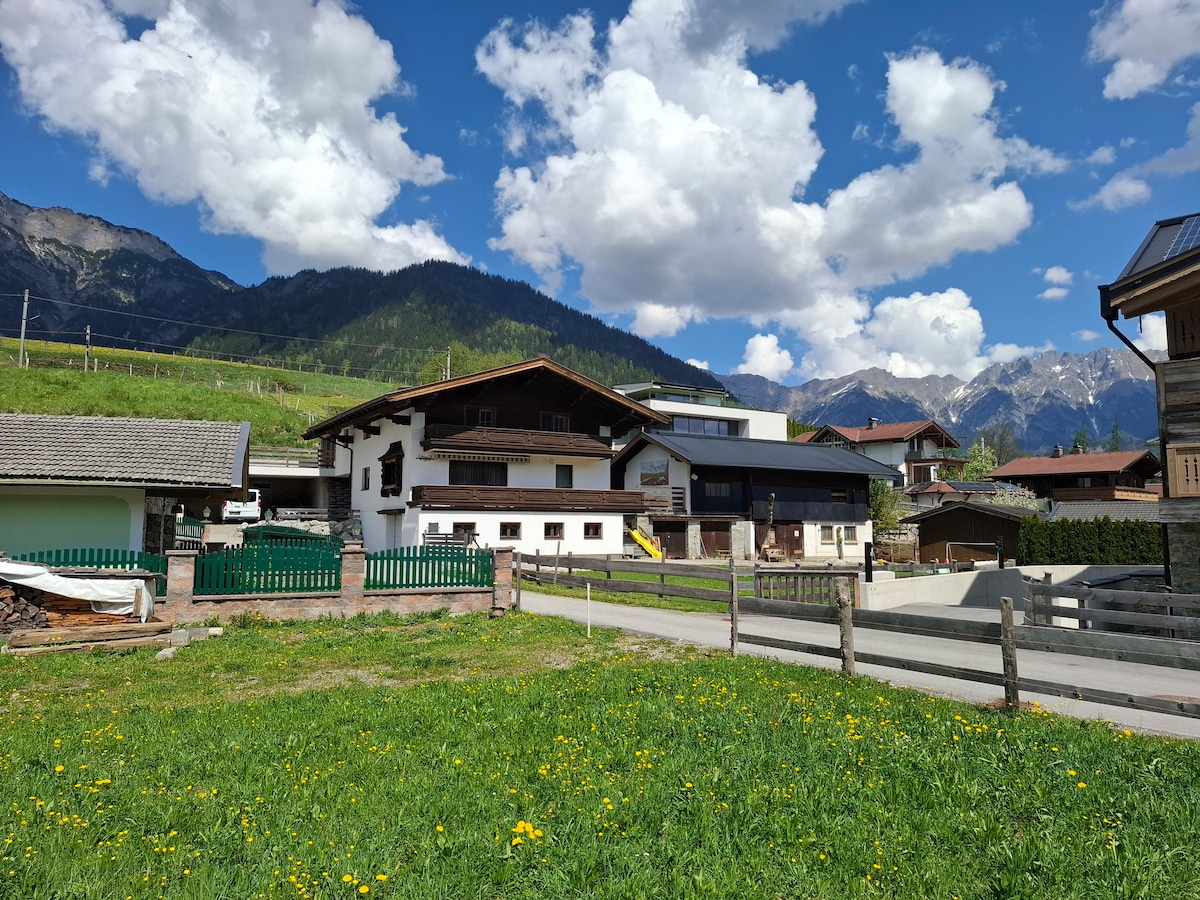Welcome to our modern but warm House in the middle of the Tyrolian Alps. The Maisonette is build in a one Family House with its own Garden and Entrance. The Zur Loipe is just 15 min Walk to the Center and Shops. Just 5 min to the several Skiing Lifts by Car. For all our Cross Country Enthusiastics the Loipe is located just in front of the Garden, no Car is needed neither long Walks. Our House is in a Dead End Street that means no traffic, just the Residens. Suitable for a couple up to 2 kids
