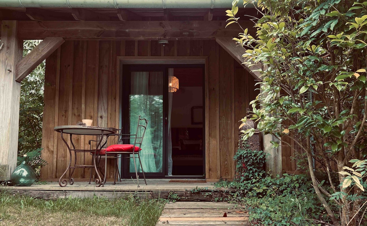 Près de la mer et de la montagne, venez vous ressourcer dans un refuge à 10 mn de Biarritz. Perchée sur pilotis à plus de 3m,entourée d'arbres dans un jardin luxuriant, la cabane est entièrement équipée pour que vous puissiez profiter d’un grand confort en pleine nature. La cuisine d'été toute équipée est sous la cabane .Vous vous réveillerez au chant des oiseaux. OPTION: payable sur place (pas de CB): Bain nordique 40€ (ou 50€ avec 2 peignoirs) . Petit déjeuner simple autonome compris .