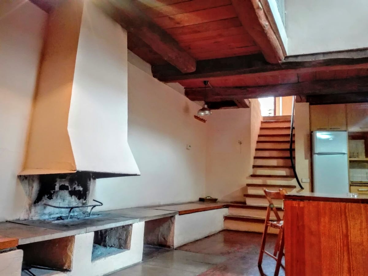 Beautiful house with a large room that is accessed from the living room/kitchen through a porch with an oak beam mullion. Both rooms share a unique fireplace lighting both the living room and the bedroom. The bedroom also gives access to a small private garden.