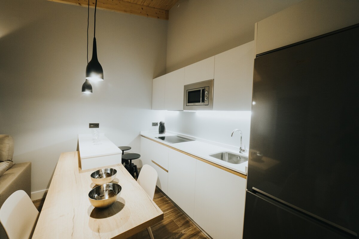 Elegant 50m apartment. Bedroom with a 1.50 double bed and large closets. A 1.40 sofa bed in the living room and private bathroom. Free Wi-Fi in the apartment and in the other common areas. It has air conditioning in all rooms. Fully equipped kitchen, including small appliances such as toaster, juicer…. The apartment has a washing machine integrated into the kitchen area. We have a coffee maker as well as a Smart TV