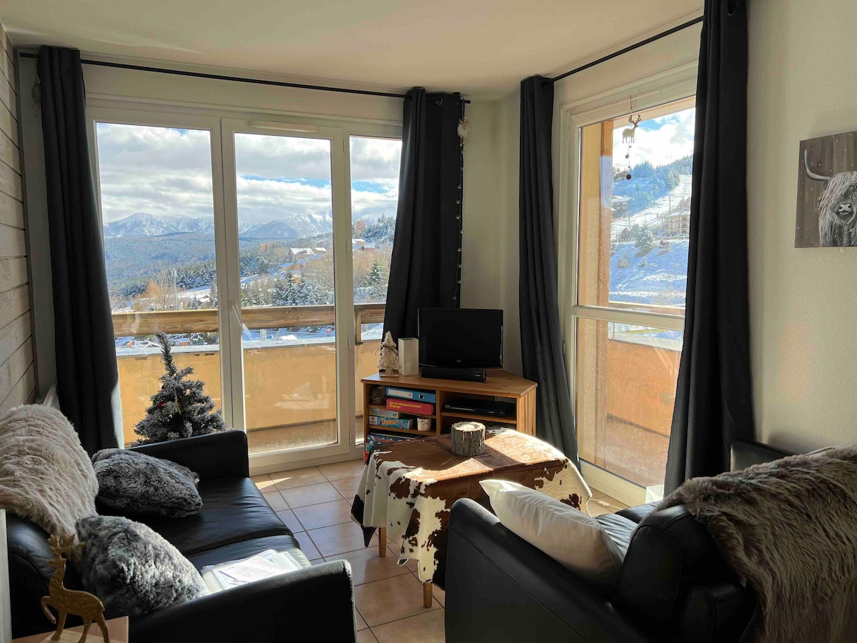 Appartement avec une déco type chalet, douillet et chaleureux de 40 m2 pouvant pouvant accueillir jusqu'à 4 personnes, dans une résidence au 4ème étage mais de plain pieds avec l avenue de Mont Louis avec ascenseur et place de parking privé gratuit à l’intérieur au niveau trois . Emplacement idéal à 50 mètres de l ESF et des remontées mécaniques. À proximité de loueurs de matériels,commerces, centre de Balneo. Avec du balcon une vue imprenable et exceptionsur le lac de Matemale et la montagne.