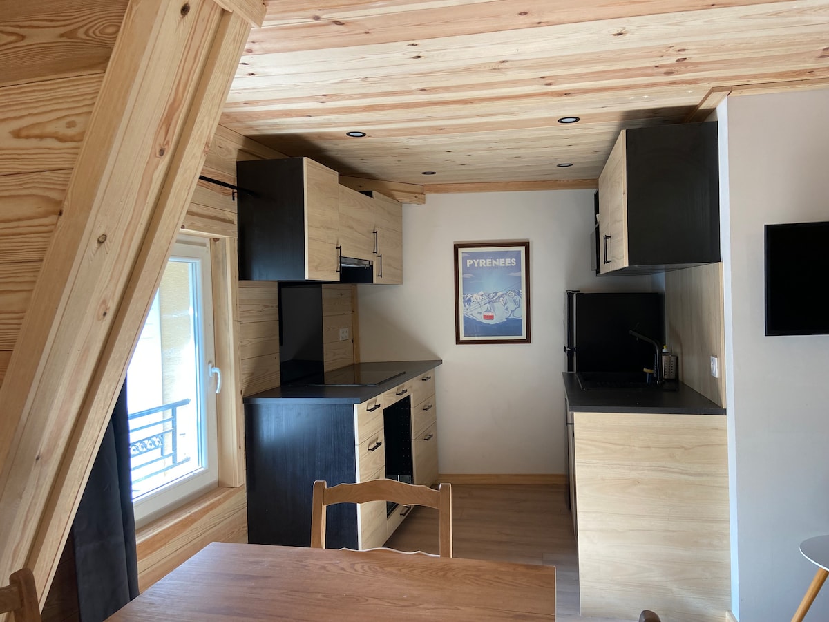 "La Biche" Studio Fully equipped 25 m2 studio with mountain views from the balcony. Perfect for a couple. In a quiet residence, not overlooked, it is on the top floor with elevator access. 2 parking spaces, including a private one in front of the residence and one below with a concierge year-round. Secure ski locker on the ground floor. 5 min walk to shops and the "Jassettes" chairlift. When snow conditions permit, skiers can arrive at the foot of the residence via the green slope.