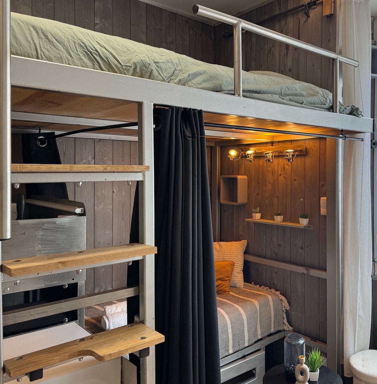 Located 5 km from Angers, the apartment (2nd floor) has been totally built and decorated by us in a modern, authentic and warm spirit. A pleasant and unique space all in comfort with a terrace at your disposal (common). Discover the "Fort Boyard" terrace 9 m from the ground, dressed in outdoor furniture to enjoy this privileged space. You want to book for two nights minimum and/or more and/or for the week, so please let me know.