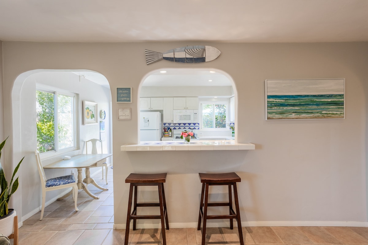 Your favorite coastal getaway awaits! Live like a local in your own casita where you can bike to the beach, coffee, dinner, drinks, and catch the sunsets on the patio. Surf some of the most iconic spots nearby or spend the day lounging in the sun and sand. Come back to this rad space with its vaulted ceilings, full kitchen, living room, and outdoor patio. The Dutch door lets in the ocean breeze. Enjoy the perfect Southern California weather as you swing on the picture-worthy swings!