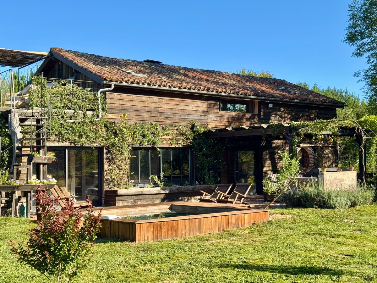 My place is a wooden house built by local carpenters with local timber. We use 100% renewable energy and even the waste is off grid. Situated in our 2 acre garden in a residential neighbourhood, opposite the pine forest. You can walk to the village for boulangerie and restaurants. We are 15 min from the Atlantic beaches of Contis. Our place is great for couples and families with kids! Come and unwind and connect with nature ! Sorry no pets :) Check out our other property- New Eco Lodge 2.