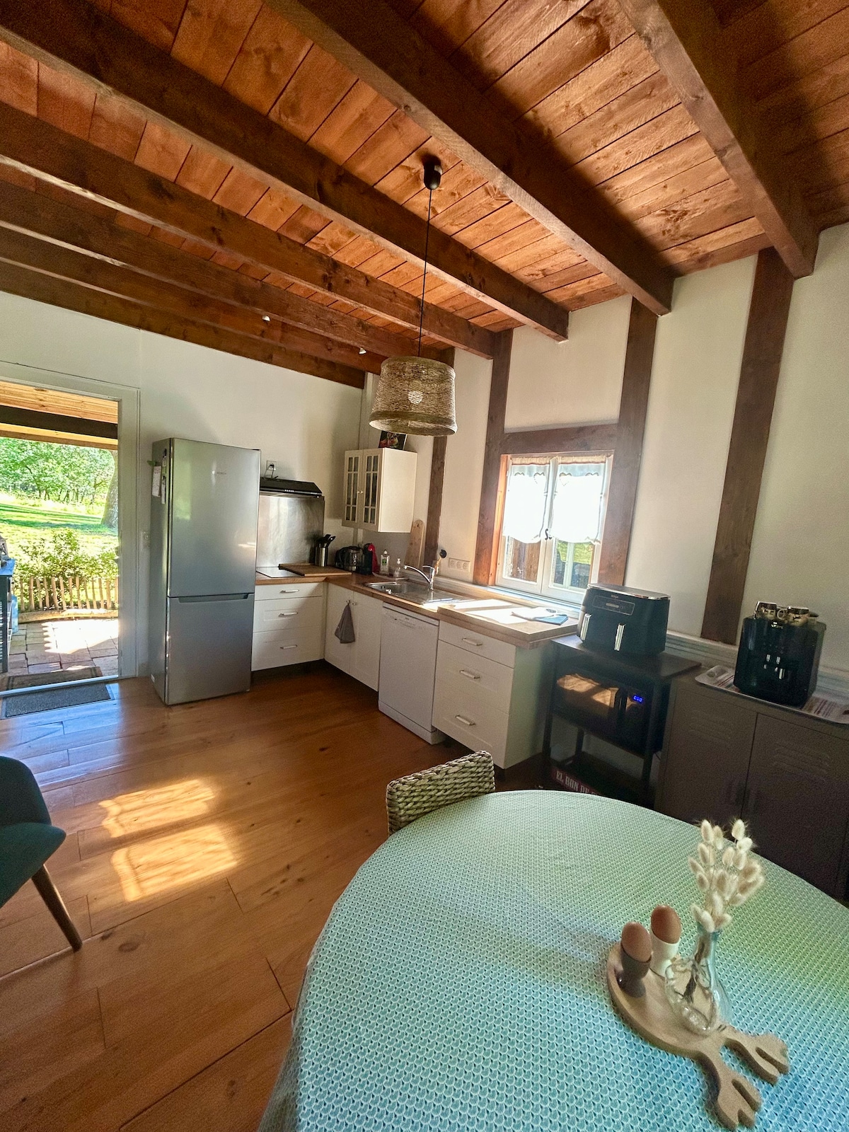 Spacious wooden house with large grounds and a stream for swimming. Covered terrace for meals and drinks with family or friends. A true haven where you can unwind and recharge your batteries. Everything is included in our rates, so all you have to do is unpack your bags and enjoy yourself as soon as you arrive. Wi-Fi available.