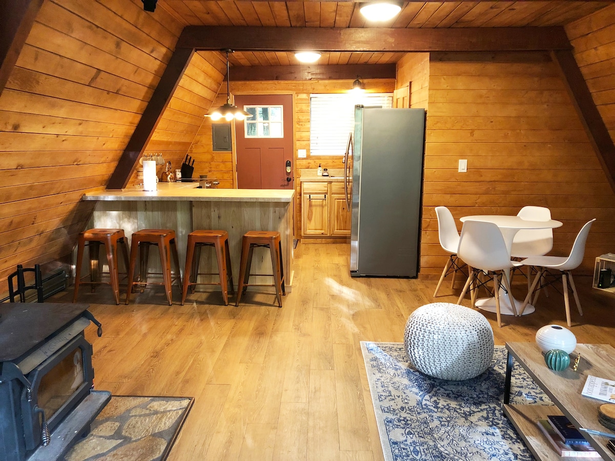 A quaint A-frame in the woods. The cabin is located close to Mount Rainier and is a 1 minute walk to the Nisqually River. Enjoy sitting next to the wood stove after a hike up in the national park, watch a movie & relax. Wifi provided. This cabin has become very popular for photo shoots and elopements. The primary use of the cabin is for two travelers looking for accommodations. If you would like to use the cabin outside of simple accommodation, please contact us beforehand for pricing.