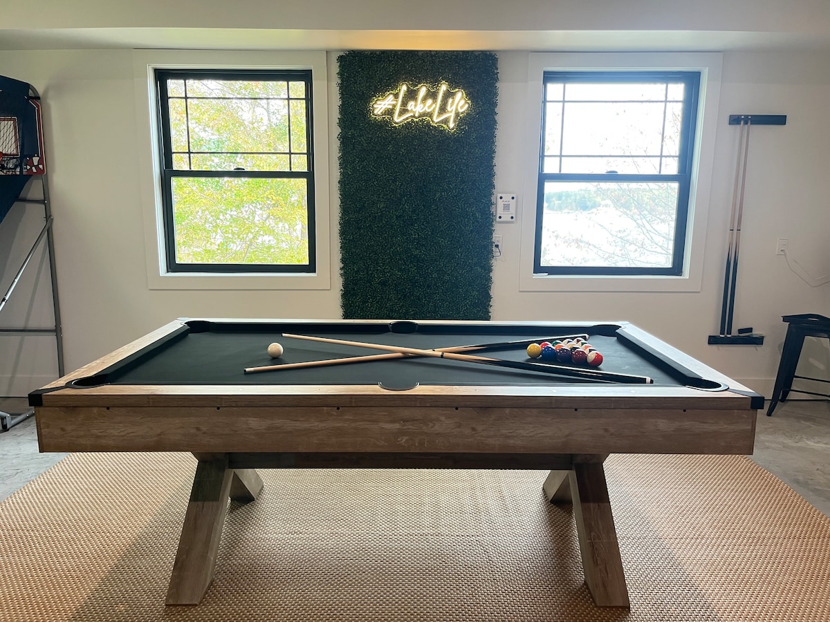 Welcome to our stunning and luxurious lake bungalow retreat! This rental offers the perfect blend of relaxation and entertainment. Situated on a hilltop with long range lake views and breathtaking sunsets that will leave you in awe. Step outside and indulge in the ultimate outdoor experience. Take a refreshing dip in the sparkling pool, work on your short game at the custom putting green, play ping pong on the turf lawn and as the sun sets gather around the fire pits! (*$150/day to heat pool)
